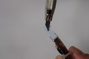 前部は、カッターで時間を掛けて丁寧に反り上げてね。ヤスリも掛けましょう。